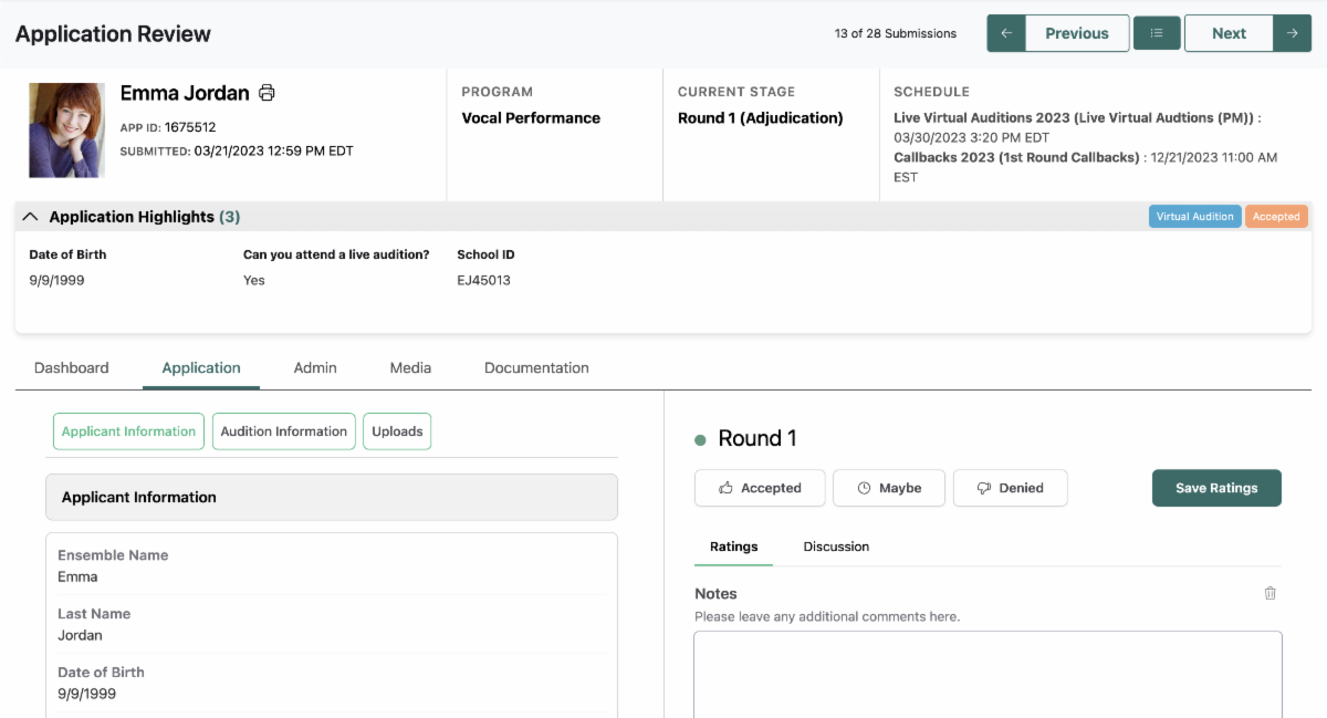 At Acceptd, we're always looking for ways to improve our software. That's why we're excited to introduce a brand new Application Review experience for the 2025-26 application and audition season! This update is live for all organizations now and includes many of our most commonly requested features. Here are just a few: